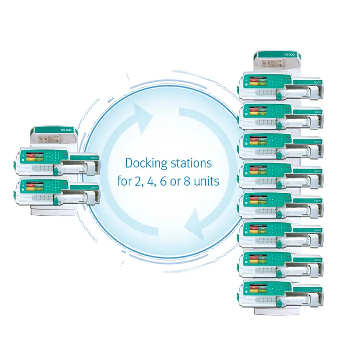 - Deliver multiple infusions while minimising space with 2, 4, 6, or 8 pump docking station configurations with optional built-in Wi-Fi