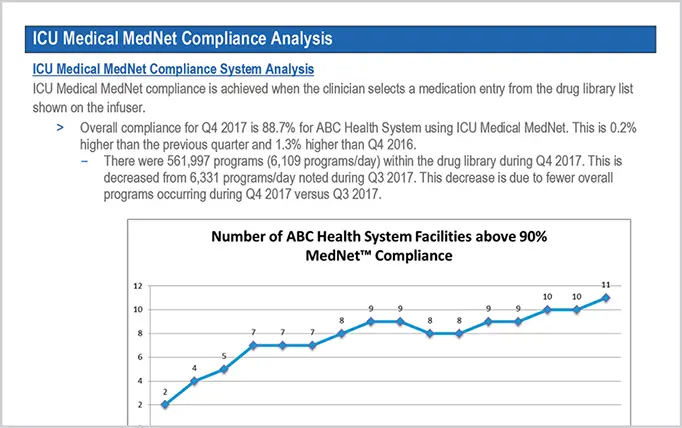 ICU Medical MedNet™ Performance™ Reports give you readily accessible information to highlight compliance, support quality initiatives, and better understand infusion practices.