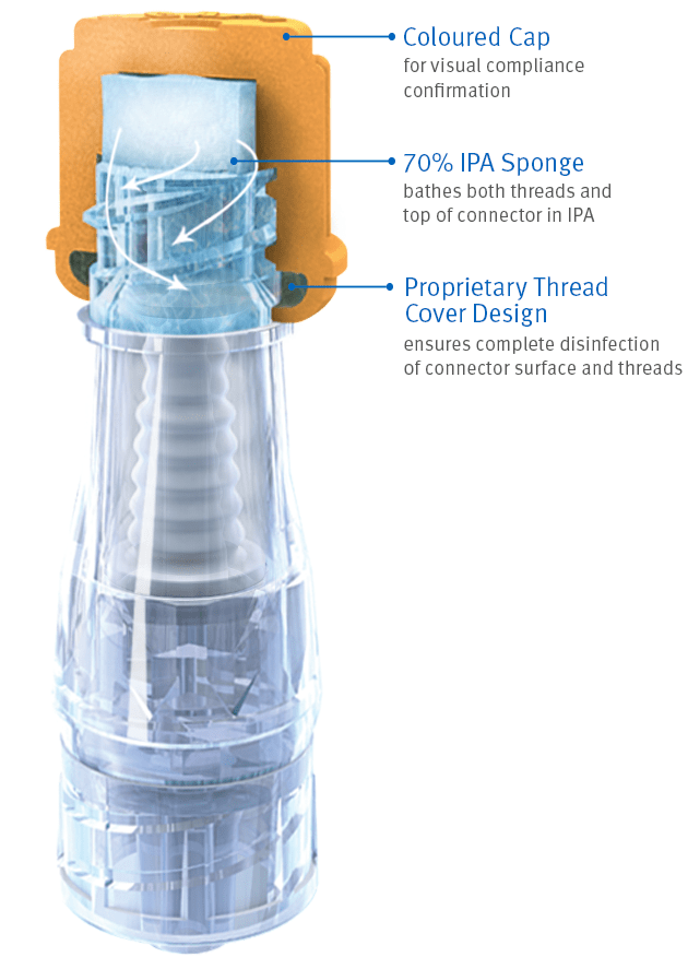 Helps ensure swabbing compliance with easily identifiable coloured disinfecting caps