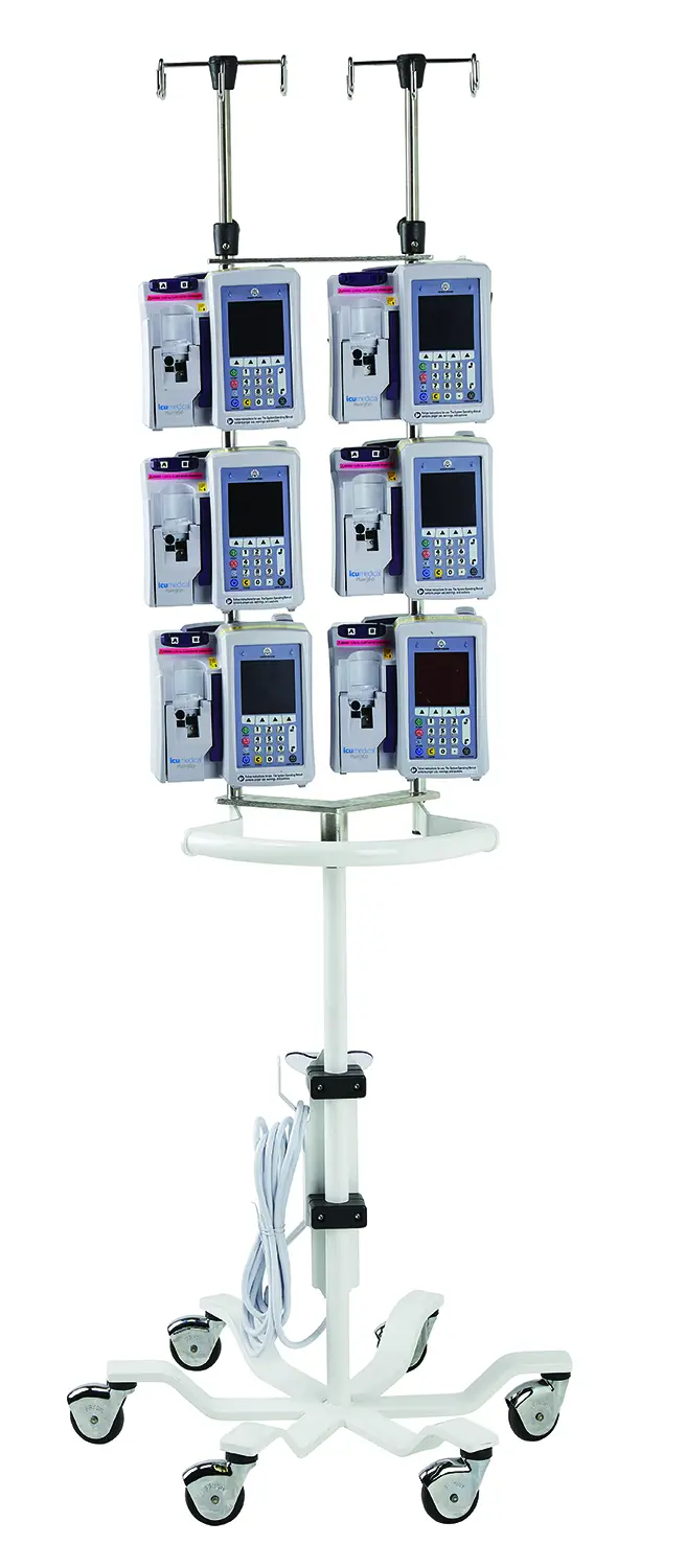 Dual IV Stand with Steel Support Handle and 6-Outlet Power Strip
