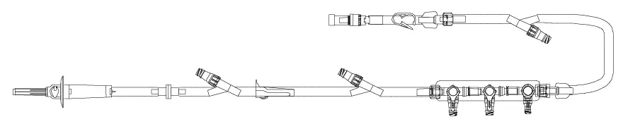 132" (335 cm) Appx 17.4 ml, 20 Drop Admin Set w/3 Clave™ Clear, Remv 3-Gang NanoClave™ Stopcock w/Baseplate, Spin Luer w/Filter Cap, 2 Ext