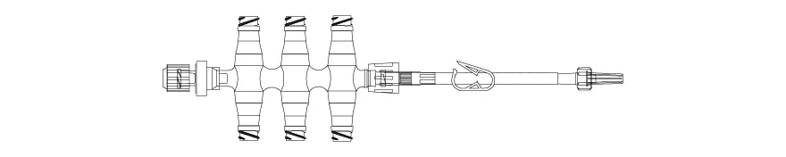 10" Ext Set w/6-Port NanoClave® Manifold, Check Valve, Clamp, Luer Lock