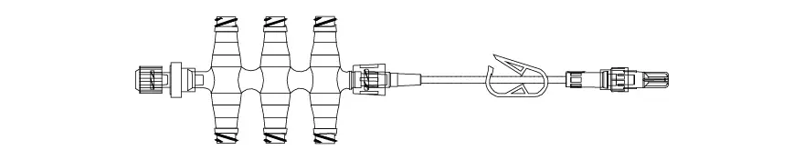10" Smallbore Ext Set w/6-Port NanoClave® Manifold, Check Valve, Clamp, Rotating Luer