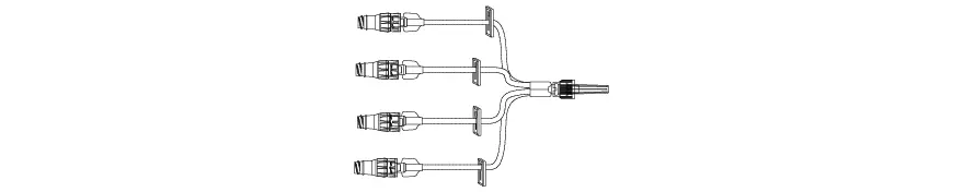 4" (10cm) Smallbore Quadfuse Ext Set w/4 Remv MicroClave® Clear, 4 Clamps, Rotating Luer