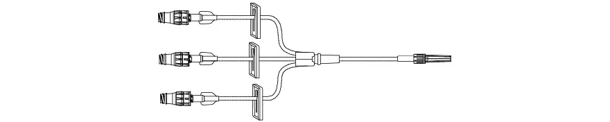 5" Smallbore Trifuse Ext Set w/3 Remv MicroClave® Clear, 3 Clamps, Luer Lock