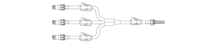 7.5" Trifuse Ext Set w/3 MicroClave® Clear, 4 Clamps (2 White, Blue, Red), Luer Lock