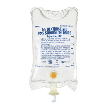 - 5% Dextrose and 0.9% Sodium Chloride Injection, USP, 500 mL