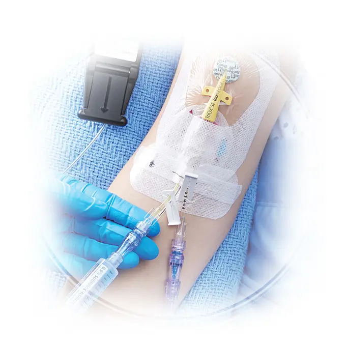 and medications or draw blood samples for laboratory testing through two high-pressure infusion lumens.