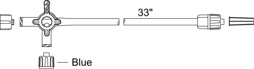 Four-Way HI-FLO™ Stopcock, Large Bore Extension, Non-Vented Blue Cap on Middle Port, Male Luer Lock