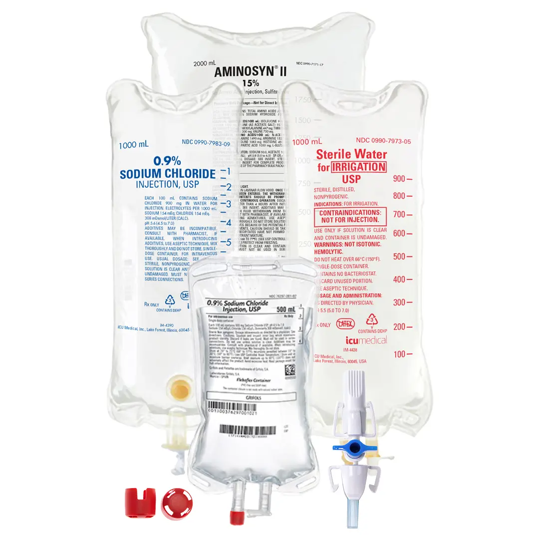 A robust portfolio of intravenous solution options in flexible containers and tamper-evident accessories for fluid and electrolyte replenishment and IV medication patient administration.