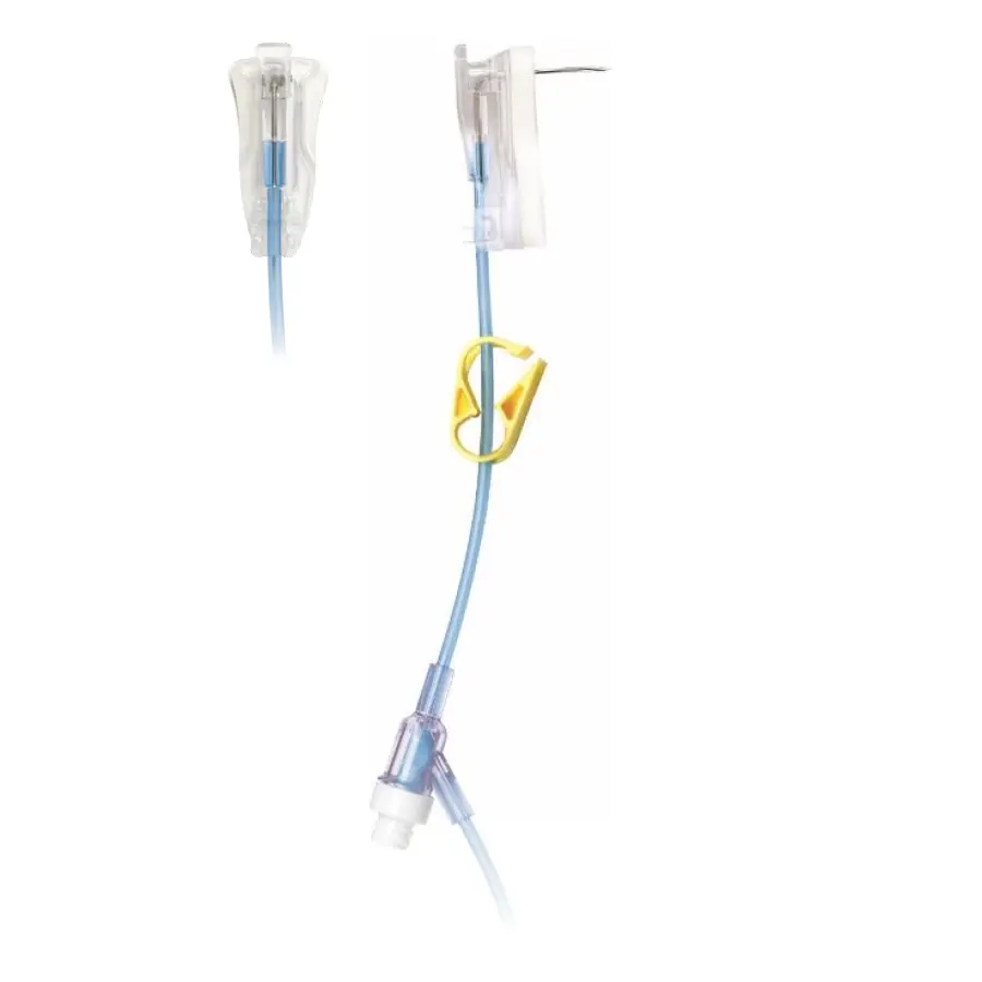 Luer-activated, needlefree Y-site model of the Gripper Plus Power P.A.C. Safety Huber Needle with a maximum flow rate of 5mL/sec
